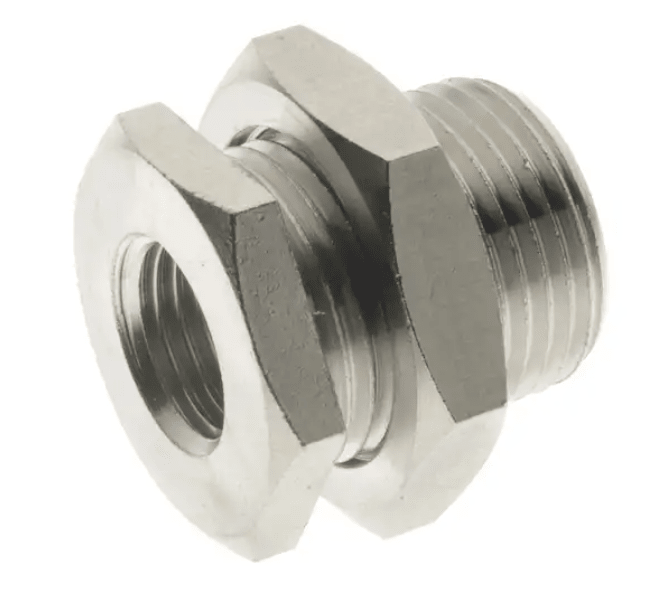 Złączka gwintowana grodziowa M5 GW, M10x1 mosiądz niklowany