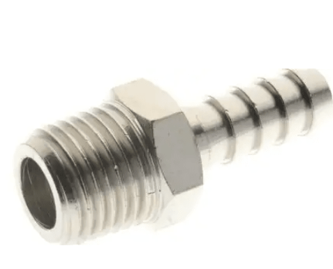 Króciec gwintowany choinka do węża fi 14 mm R 3/8 GZ, mosiądz niklowany, gwint stożkowy